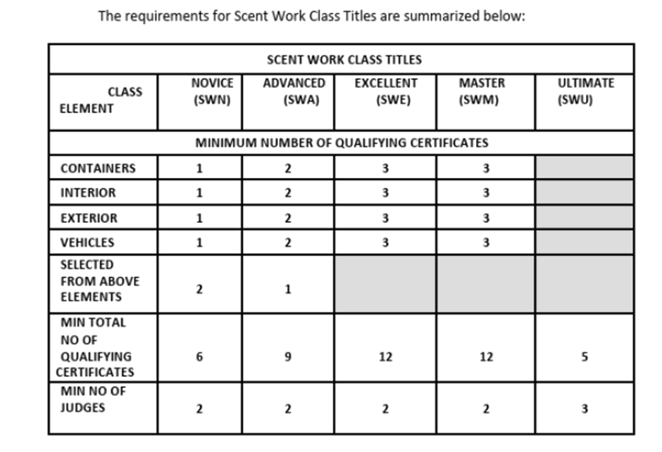 Owners and dogs need to gain several qualifications at each level to progress to more complex searches at higher levels.